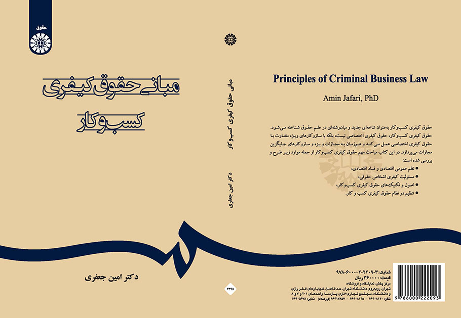 کتاب «مبانی حقوق کیفری کسب‌وکار» اثر امین جعفری به همت انتشارات سمت در ۳۱۴ صفحه و با شمارگان ۵۰۰ نسخه و قیمت ۳۶ هزار تومان منتشر شد.