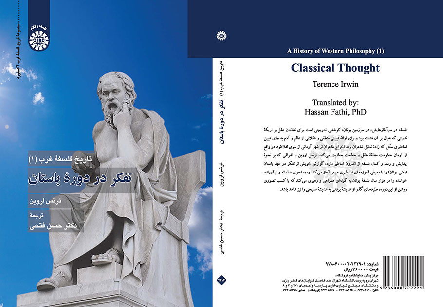 جلد نخست مجموعه تاریخ فلسفه غرب با عنوان «تفکر در دوره باستان» اثر ترنس اروین را حسن فتحی ترجمه و سازمان سمت در ۳۰۹ صفحه و با شمارگان ۵۰۰ نسخه و قیمت ۳۶ هزار تومان منتشر کرد.