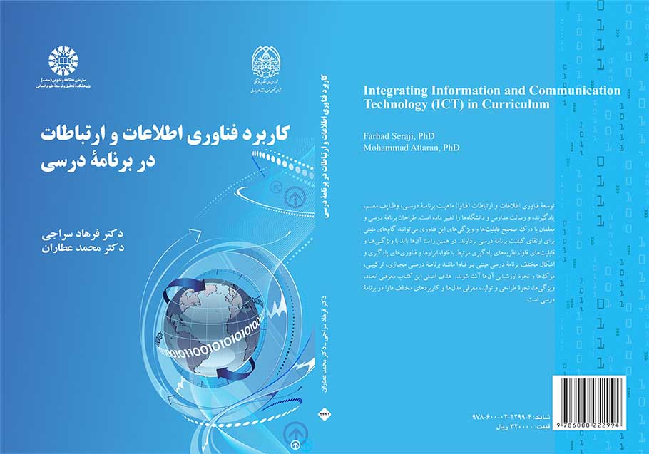 کتاب «کاربرد فناوری اطلاعات و ارتباطات در برنامه درسی» تالیف فرهاد سراجی و محمد عطاران از سوی سازمان سمت و با همکاری شورای عالی انقلاب فرهنگی در ۱۹۳ صفحه و با شمارگان ۵۰۰ نسخه و قیمت ۳۲ هزار تومان منتشر شده است.