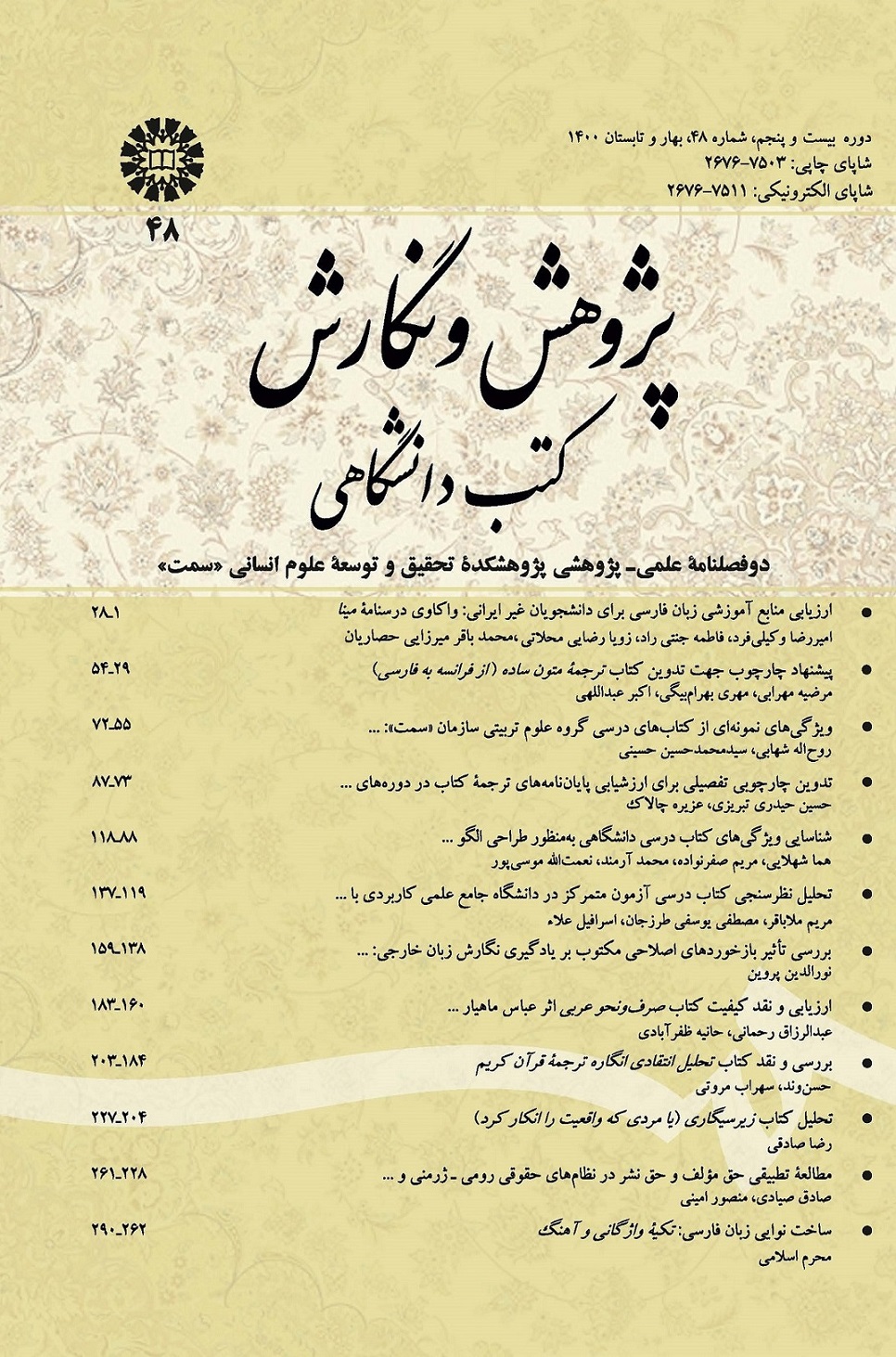 چهل و پنجمین شماره دوفصلنامه علمی پژوهش و نگارش کتب دانشگاهی از سوی سازمان سمت به صورت الکترونیکی منتشر شد.