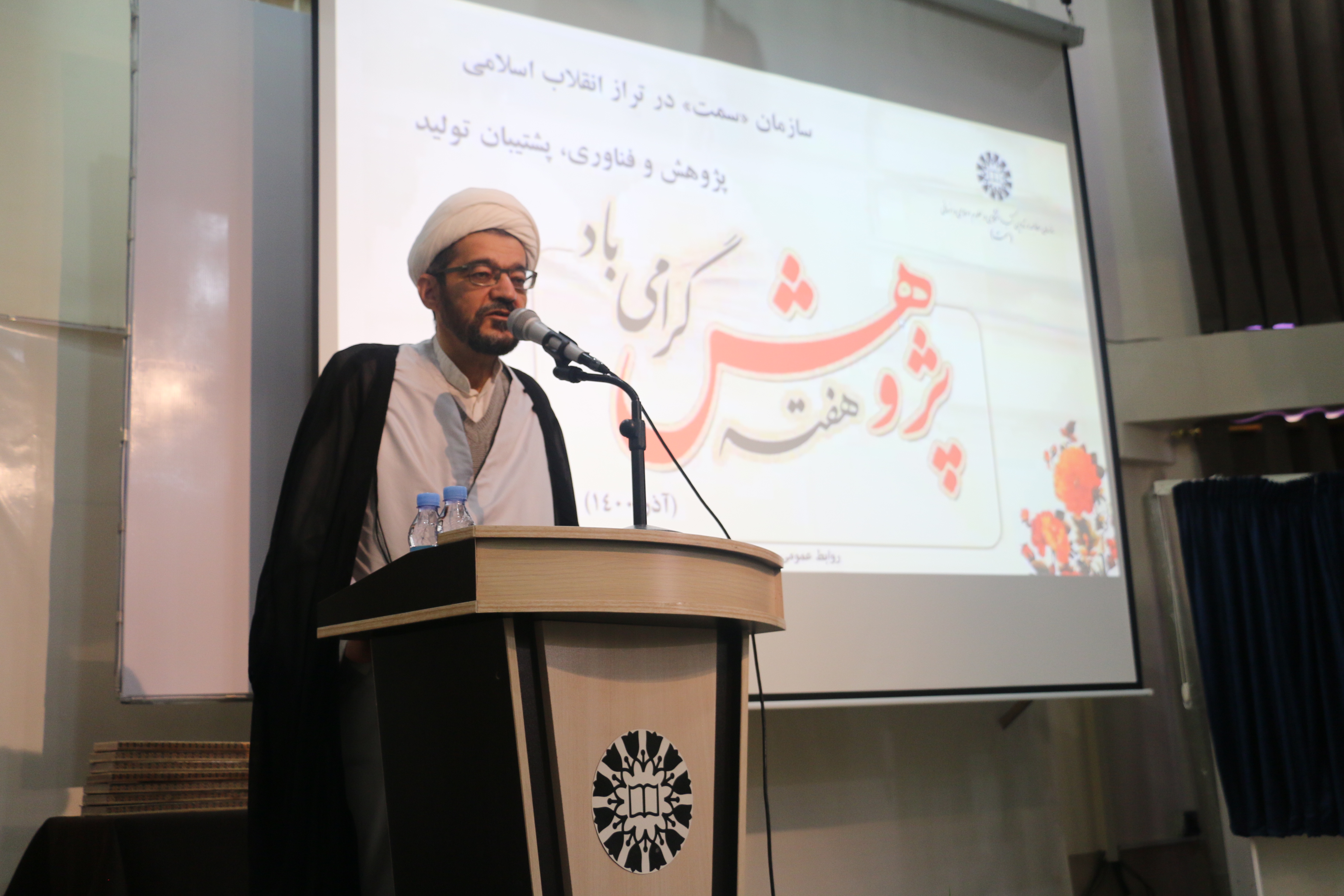 حجتالاسلام دکتر داود مهدوی زادگان سرپرست سازمان سمت نیز در ادامه این همایش پس از تبریک هفته پژوهش به همه پژوهشگران به فلسفه هفته پژوهش اشاره کرد و گفت: لازم است روی فلسفه هفته پژوهش تامل کنیم، درواقع پژوهش به این معنی است که موضوعی انتخاب میکنیم و درباره آن مطالعه میکنیم. اما بسیار کم این اتفاق میافتد که خود پژوهش را موضوع پژوهشمان قرار دهیم. شاید نزدیکترین رشته که این کار را میکند فلسفه علم باشد. در حالیکه همواره ما نیازمند خودارزیابی و خودانتقادی هستیم. از این جهت هفته پژوهش این فرصت را به ما میدهد که پژوهش را موضوع پژوهش قرار دهیم و جوانب آن را بسنجیم. یکی از مباحث مهم درباره پژوهش نسبت پژوهش با پارهای از مسائل مهم مانند انقلاب اسلامی است.