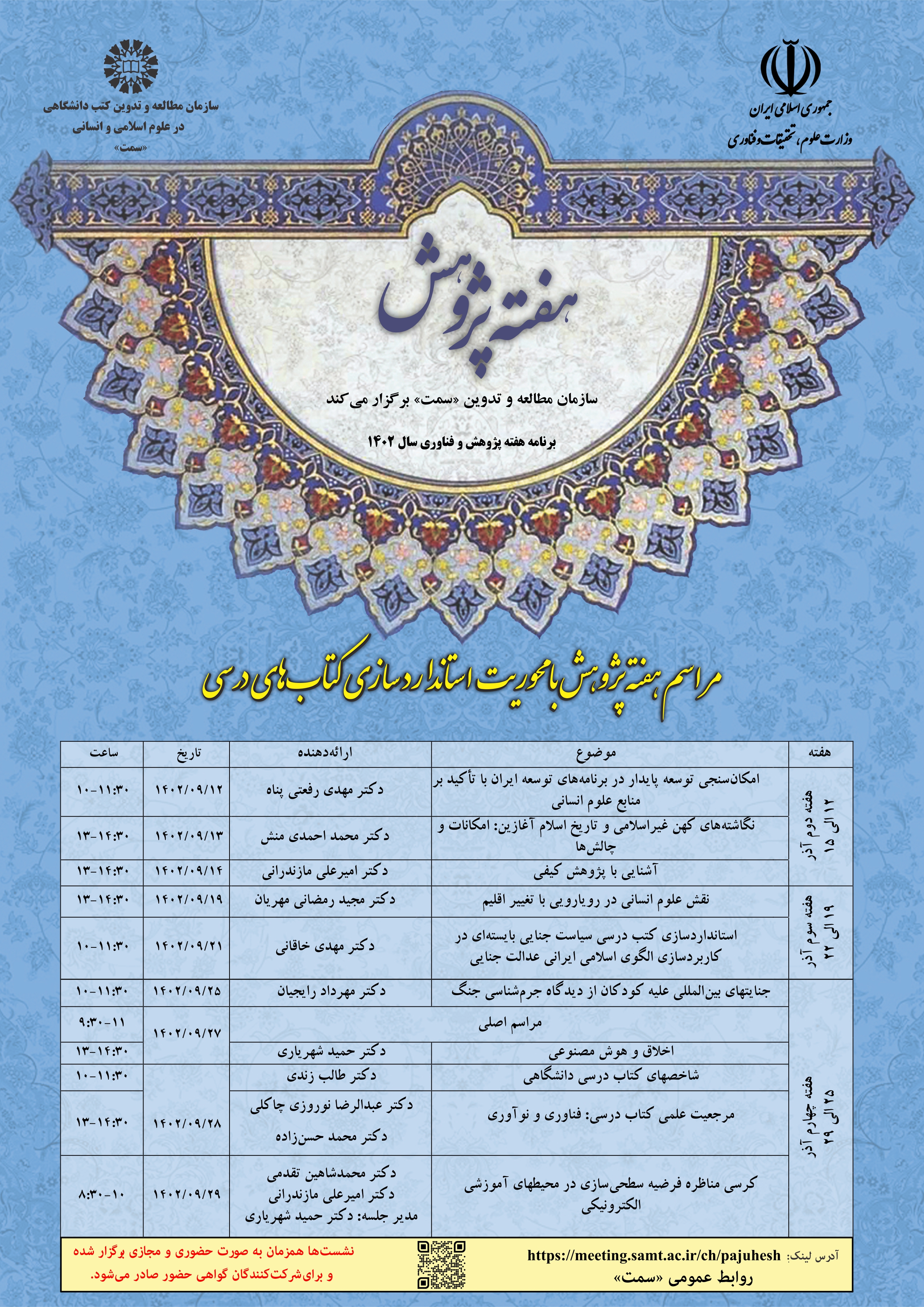 برنامههای معاونت پژوهشی «سمت» به مناسبت هفته پژوهش